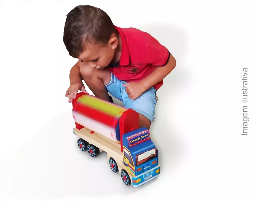 01 caminhão medindo 330mm x 104mm x 195mm, com 01 tambor sonoro.