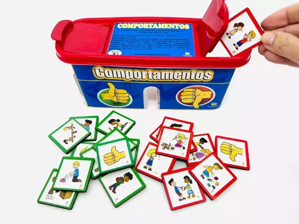 - Compreensão Comportamental: O conjunto inclui fichas de MDF que retratam ilustrações e descrições de diferentes comportamentos, tanto os desejáveis como os indesejáveis. Essas fichas funcionam como ferramentas visuais e interativas, permitindo que as crianças reconheçam, identifiquem e compreendam os efeitos e as consequências dos comportamentos em um contexto lúdico.