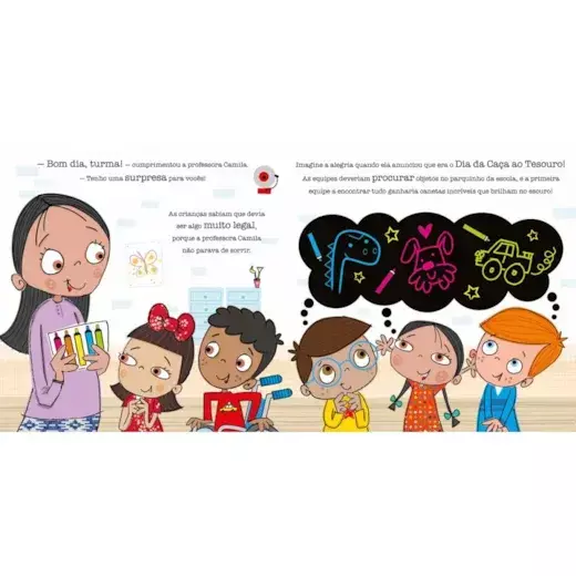 Meu Mundo Melhor - Hora de Trabalhar em Equipe Tati está confiante de que sabe exatamente onde encontrar todos os tesouros na caça ao tesouro. Determinada, ela decide agir sozinha e ignora sua equipe… mas logo descobre que trabalhar em equipe pode ser muito mais divertido e eficaz! Venha se divertir com Tati e as outras crianças da turma da professora Camila nesta história encantadora e cheia de aprendizados! Ideal para crianças, este livro ajuda os pequenos leitores a entenderem, de forma leve e envolvente, como lidar com seus próprios comportamentos enquanto aprendem o valor da cooperação.