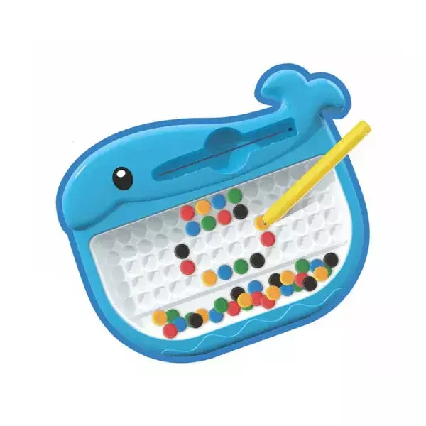 Brinquedo educativo para desenhar e escrever com pontos coloridos e caneta magnética.
