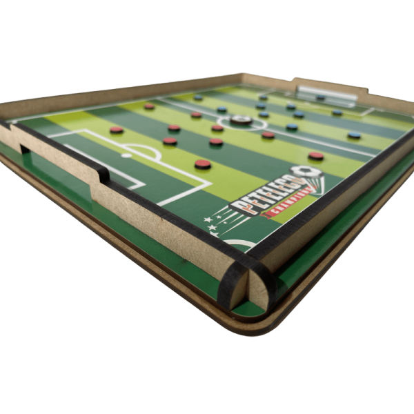 O objetivo é fazer gol no adversário. Movimente a peça da bola com petelecos, atravessando o campo e desviando dos obstáculos. Cada jogador tem até 3 chances para fazer o gol no adversário. Quem fizer mais gols, ganha!