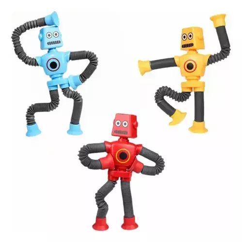Pop Tube de Robô com Luz e Ventosa é Super Atrativo e Envolvente para os Pequenos, desenvolvendo a criatividade!