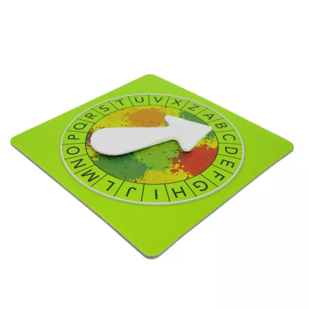 A Roleta Abecedário é um acessório versátil, com dimensões de 9,5 x 9,5 x 0,5cm, ideal para brincar de Stop e outros jogos criativos. Feita de papelão empastado, possui um verso preto e uma seta branca de plástico, facilitando o sorteio de letras de forma prática e divertida. Perfeita para adicionar mais dinamismo a diferentes brincadeiras educativas e lúdicas.