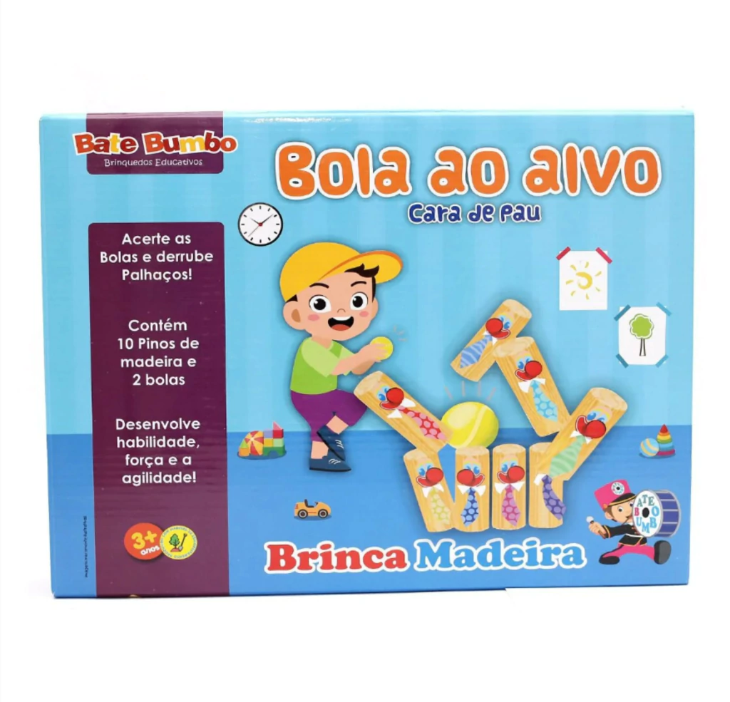 O Bola ao Alvo é uma brincadeira divertida e interativa, que inclui duas bolas de borracha e dez pinos de madeira com carinhas de palhaço. As crianças vão se encantar com o jogo, que promove a interação social, além de estimular a força, a precisão e a agilidade de forma lúdica e envolvente.