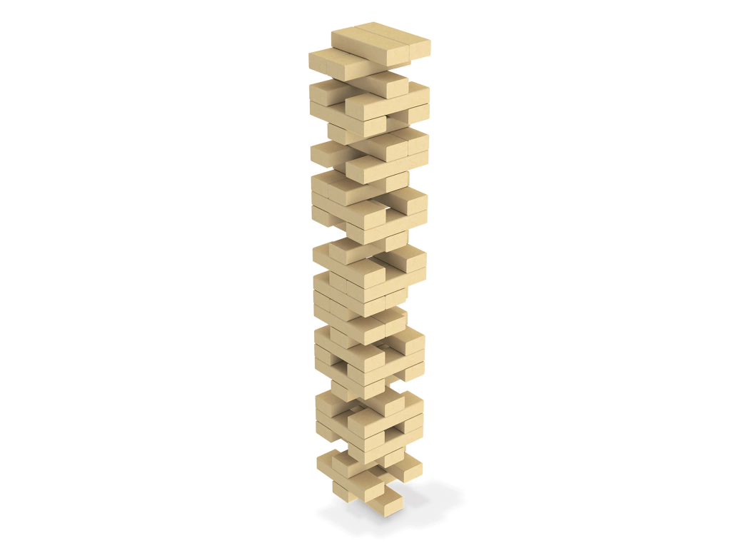 Torre Equilíbrio Clássica da Junges com 54 peças em madeira de reflorestamento (MDF) em 12mm de espessura com arestas arredondadas!